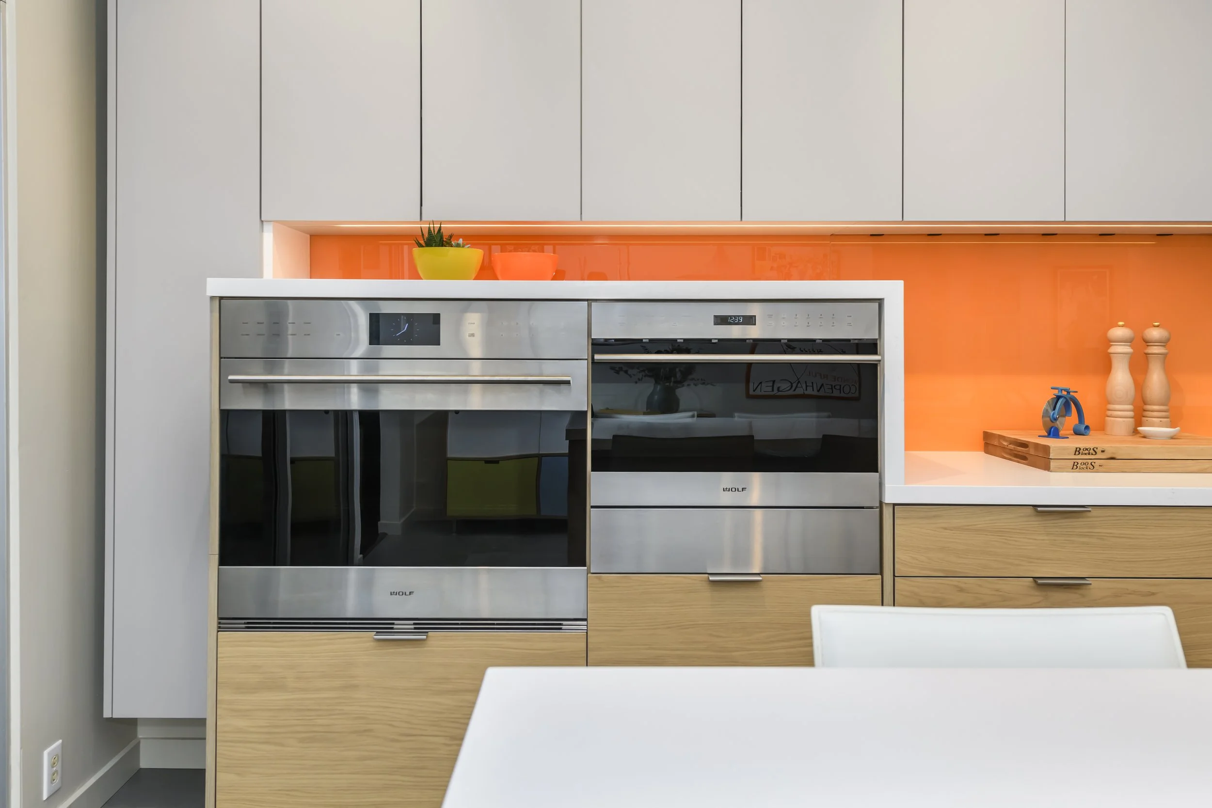 Back painted glass brings bold, custom color to backsplashes, walls, and feature spaces with a sleek finish that’s as easy to clean as it is beautiful.
